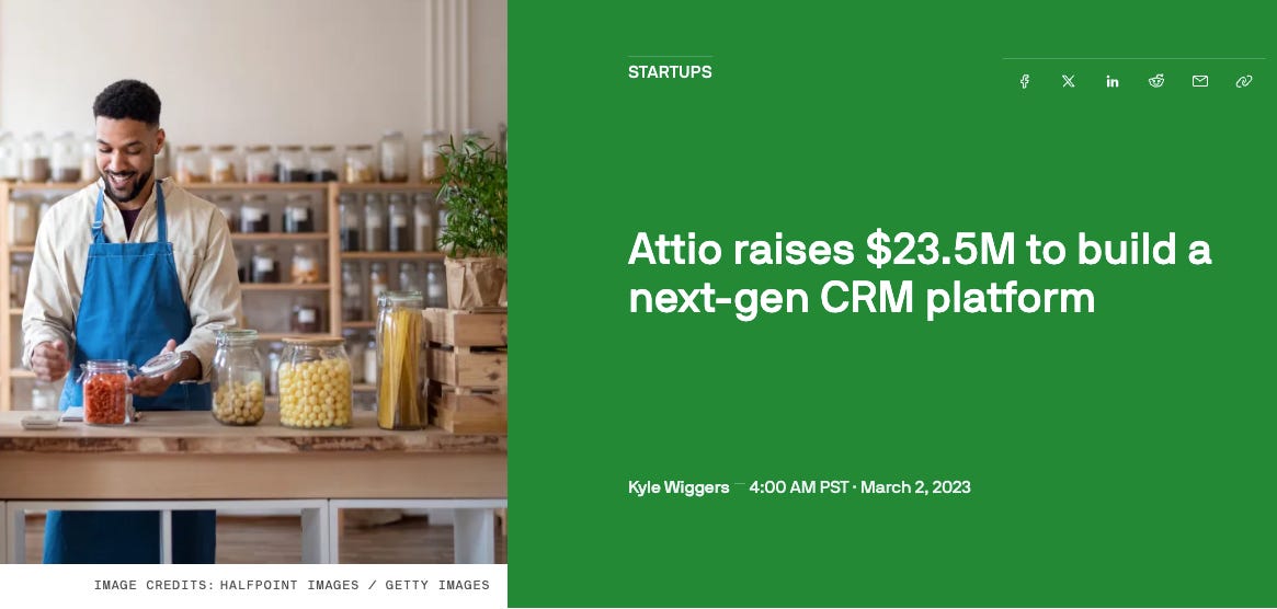 The public launch in March 2023 was paired with a PR wave, a $23.5M Series A announcement covered by TechCrunch, and a #1 Product Hunt campaign - all timed to hit simultaneously, creating immediate momentum. The message was clear: Attio is no longer a private beta. It’s open, funded, and ready to compete.