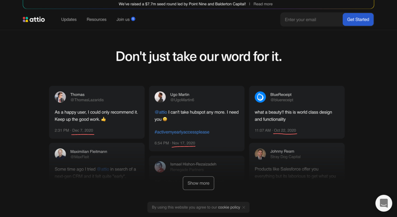 The founders invested in their own PR and proof-building from the start, treating public credibility as a compounding asset, not a launch-day tactic. By autumn 2020, they started collecting positive mentions appearing on X - including from TechCrunch.